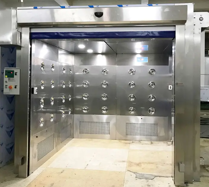 貨淋室是潔凈廠房和潔凈室的輔助設(shè)備,用于除去進(jìn)入凈化廠房的物品表面附著的塵埃,同時(shí)貨淋室也起到氣閘的作用,防止未經(jīng)凈化的空氣進(jìn)入潔凈區(qū)域,是進(jìn)行物品凈化和防止外空氣污染潔凈區(qū)的有效設(shè)備。